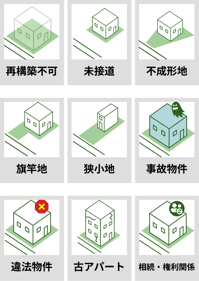 どんな物件も無料で査定致します。 「訳あり物件が理由で断られた」「他社の査定額が思ったより安かった」 という方もお気軽にご相談ください。